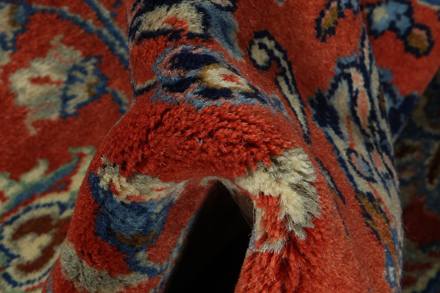 Alfombras Farahan: La región de Farahan está en el centro de Irán, aproximadamente 580 km al sur de Teherán, entre las ciudades de Arak, Qum y Kashan. La región tiene una larga historia en el sector de las alfombras y desde el siglo XIX se hacen exportaciones a Europa. Hoy, en los países occidentales las alfombras Farahan son conocidas también como alfombras Mahal. Son hechas de manera robusta y sus motivos son relajajos. Se tiñen con fósiles que dan este color verde óxido. Se tejen en la región de Sarouk y se encuentan ente las alfombras más renombradas. A menudo, hay un fondo azul en el pelo, rodeado por los motivos repetidos Herati y medallones rodeados de rosas y otras flores en varios colores. Su lana es suave, lo que da la posibilidad de tener una textura elegante y robusta.