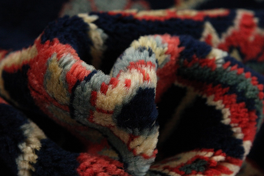 Abrash: A causa de su carácter graso variado y de la cantidad diferente de sal durante el teñido, las lanas absorben diferentes cantidades de color. Antes de tejerlas no es tan visible. Sin embargo, durante el proceso de tejido aparecen diferentes tonos del mismo color. Eso se llama Abrash que en persa significa nube y demuestra el hecho de que no se han usado medios químicos. Ejemplos