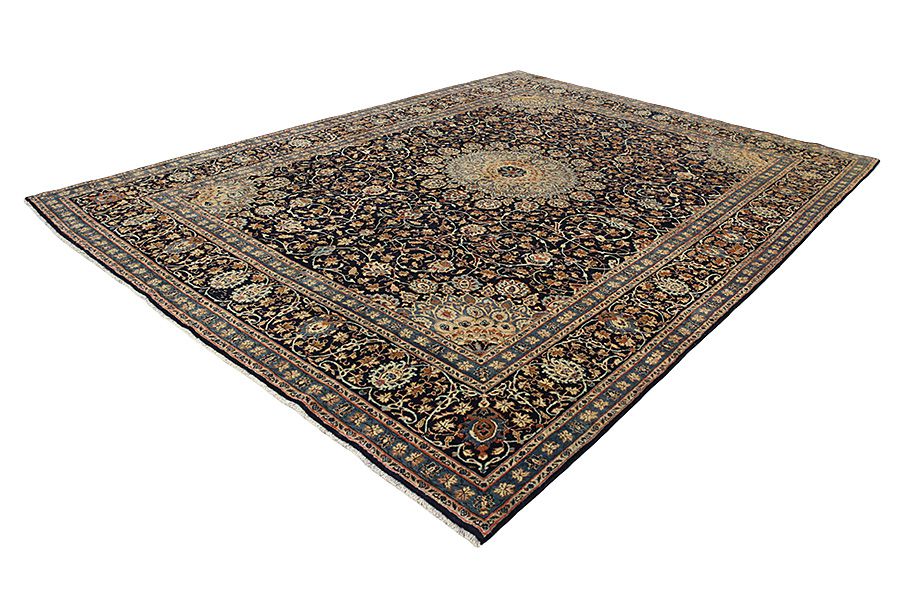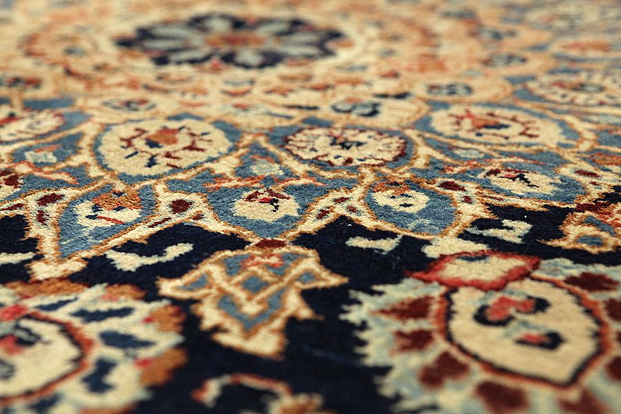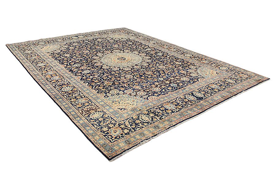 Alfombras Tabriz: La ciudad de Tabriz es la capital de la provincia de Azerbaiyán en el suroeste de Irán. Hasta el final de la época de las caravanas fue el centro más importante de tejido y mercado de las alfombras Tabriz. El Occidente compraba aquí las obras maestras creadas por los tejedores renombrados y capacitados. Se conocieron en los mercados internacionales por su alta calidad. Se crearon talleres de alfombras tejidas a mano, donde se tejían diseños antiguos y modernos anudados con densidad y meteriales de alta calidad. La seda y la lana fina de primera clase dan una alta calidad a las alfombras. Ninguna ciudad persa tenía una producción tan grande y amplia de alfombras. Con o sin medallón, sus motivos son excepcionales y llenos de fantasía. Flores, representaciones y versos de poemas también decoran las alfombras. Los colores predominantes son el beige, el azul y el rojo.