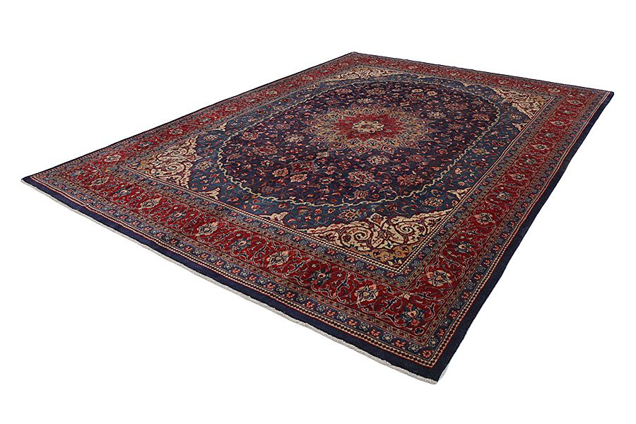 Alfombras Tabriz: La ciudad de Tabriz es la capital de la provincia de Azerbaiyán en el suroeste de Irán. Hasta el final de la época de las caravanas fue el centro más importante de tejido y mercado de las alfombras Tabriz. El Occidente compraba aquí las obras maestras creadas por los tejedores renombrados y capacitados. Se conocieron en los mercados internacionales por su alta calidad. Se crearon talleres de alfombras tejidas a mano, donde se tejían diseños antiguos y modernos anudados con densidad y meteriales de alta calidad. La seda y la lana fina de primera clase dan una alta calidad a las alfombras. Ninguna ciudad persa tenía una producción tan grande y amplia de alfombras. Con o sin medallón, sus motivos son excepcionales y llenos de fantasía. Flores, representaciones y versos de poemas también decoran las alfombras. Los colores predominantes son el beige, el azul y el rojo.