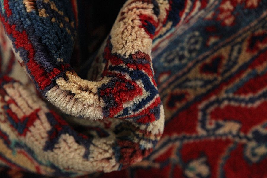 Abrash: A causa de su carácter graso variado y de la cantidad diferente de sal durante el teñido, las lanas absorben diferentes cantidades de color. Antes de tejerlas no es tan visible. Sin embargo, durante el proceso de tejido aparecen diferentes tonos del mismo color. Eso se llama Abrash que en persa significa nube y demuestra el hecho de que no se han usado medios químicos. Ejemplos