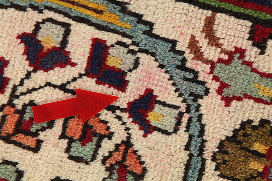 Abrash: A causa de su carácter graso variado y de la cantidad diferente de sal durante el teñido, las lanas absorben diferentes cantidades de color. Antes de tejerlas no es tan visible. Sin embargo, durante el proceso de tejido aparecen diferentes tonos del mismo color. Eso se llama Abrash que en persa significa nube y demuestra el hecho de que no se han usado medios químicos. Ejemplos