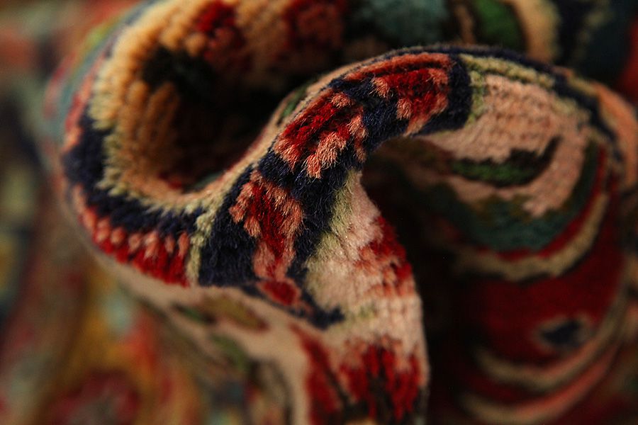 Abrash: A causa de su carácter graso variado y de la cantidad diferente de sal durante el teñido, las lanas absorben diferentes cantidades de color. Antes de tejerlas no es tan visible. Sin embargo, durante el proceso de tejido aparecen diferentes tonos del mismo color. Eso se llama Abrash que en persa significa nube y demuestra el hecho de que no se han usado medios químicos. Ejemplos