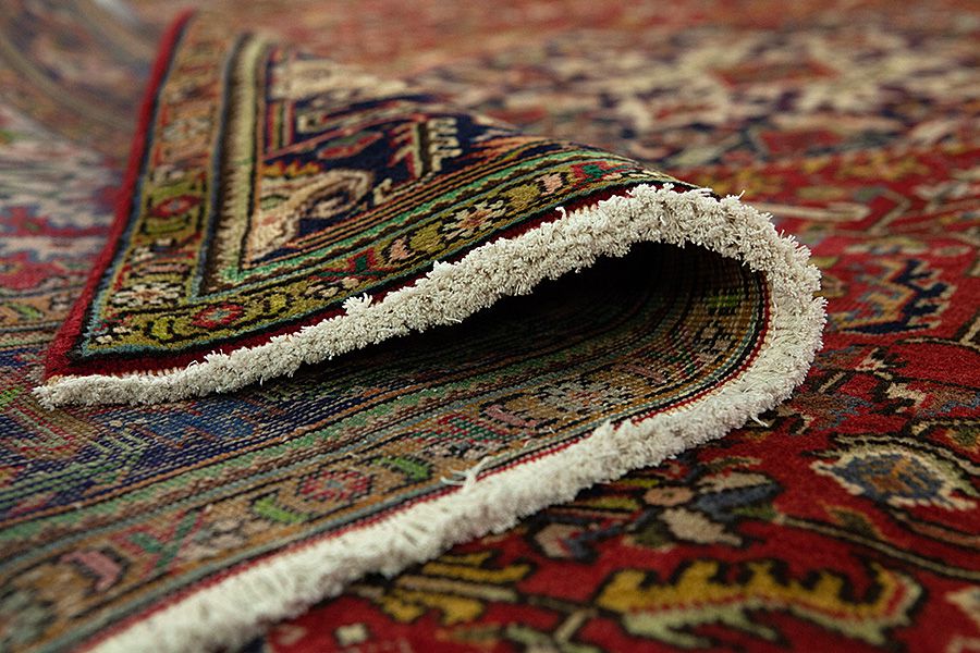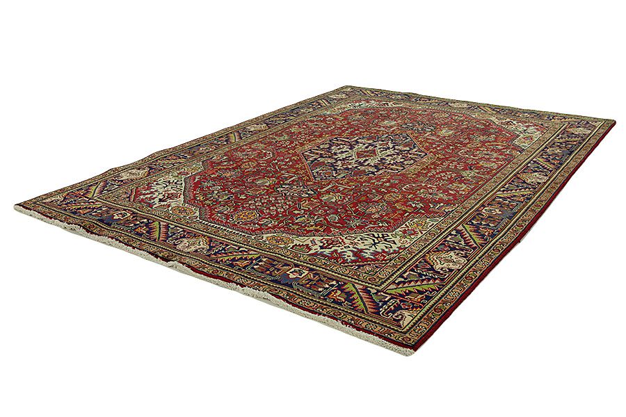 Alfombras Tabriz: La ciudad de Tabriz es la capital de la provincia de Azerbaiyán en el suroeste de Irán. Hasta el final de la época de las caravanas fue el centro más importante de tejido y mercado de las alfombras Tabriz. El Occidente compraba aquí las obras maestras creadas por los tejedores renombrados y capacitados. Se conocieron en los mercados internacionales por su alta calidad. Se crearon talleres de alfombras tejidas a mano, donde se tejían diseños antiguos y modernos anudados con densidad y meteriales de alta calidad. La seda y la lana fina de primera clase dan una alta calidad a las alfombras. Ninguna ciudad persa tenía una producción tan grande y amplia de alfombras. Con o sin medallón, sus motivos son excepcionales y llenos de fantasía. Flores, representaciones y versos de poemas también decoran las alfombras. Los colores predominantes son el beige, el azul y el rojo.