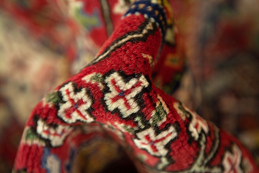 Abrash: A causa de su carácter graso variado y de la cantidad diferente de sal durante el teñido, las lanas absorben diferentes cantidades de color. Antes de tejerlas no es tan visible. Sin embargo, durante el proceso de tejido aparecen diferentes tonos del mismo color. Eso se llama Abrash que en persa significa nube y demuestra el hecho de que no se han usado medios químicos. Ejemplos