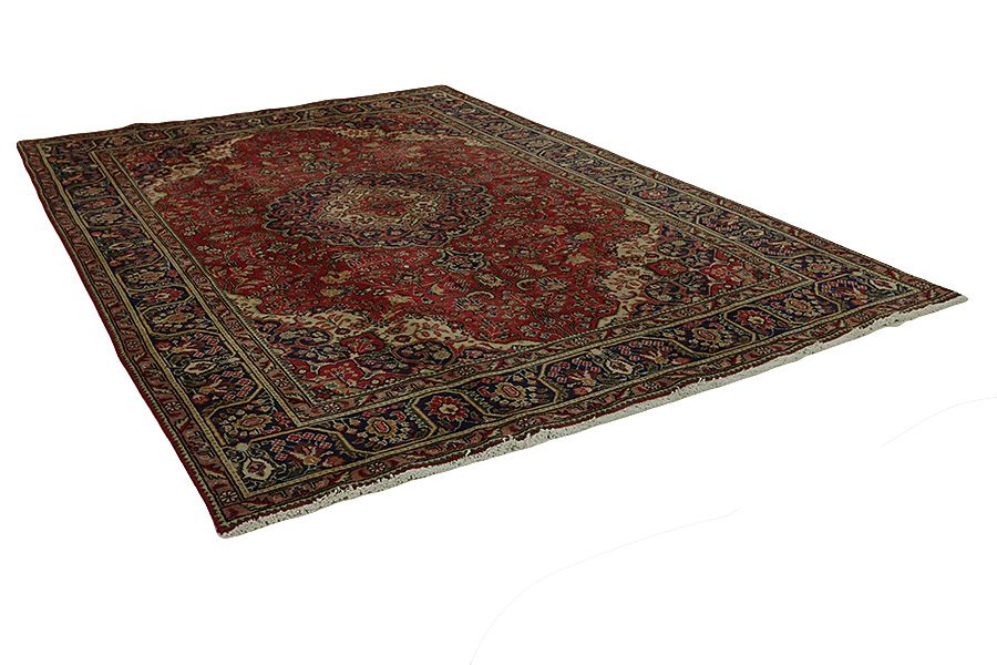 Alfombras Tabriz: La ciudad de Tabriz es la capital de la provincia de Azerbaiyán en el suroeste de Irán. Hasta el final de la época de las caravanas fue el centro más importante de tejido y mercado de las alfombras Tabriz. El Occidente compraba aquí las obras maestras creadas por los tejedores renombrados y capacitados. Se conocieron en los mercados internacionales por su alta calidad. Se crearon talleres de alfombras tejidas a mano, donde se tejían diseños antiguos y modernos anudados con densidad y meteriales de alta calidad. La seda y la lana fina de primera clase dan una alta calidad a las alfombras. Ninguna ciudad persa tenía una producción tan grande y amplia de alfombras. Con o sin medallón, sus motivos son excepcionales y llenos de fantasía. Flores, representaciones y versos de poemas también decoran las alfombras. Los colores predominantes son el beige, el azul y el rojo.