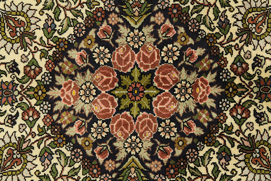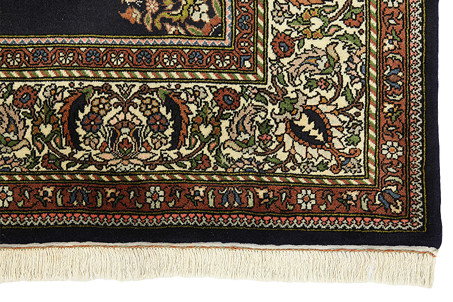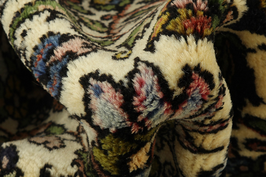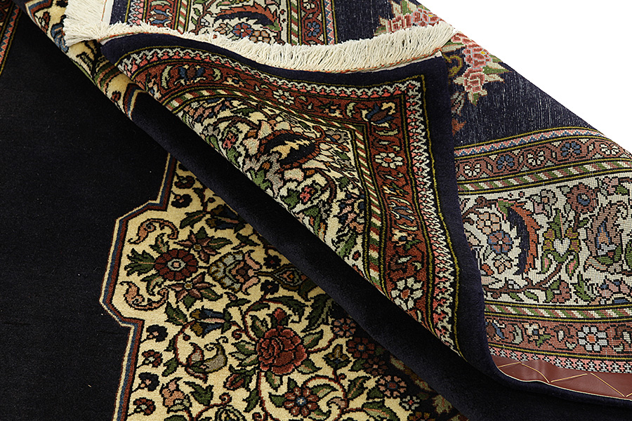 Alfombras Tabriz: La ciudad de Tabriz es la capital de la provincia de Azerbaiyán en el suroeste de Irán. Hasta el final de la época de las caravanas fue el centro más importante de tejido y mercado de las alfombras Tabriz. El Occidente compraba aquí las obras maestras creadas por los tejedores renombrados y capacitados. Se conocieron en los mercados internacionales por su alta calidad. Se crearon talleres de alfombras tejidas a mano, donde se tejían diseños antiguos y modernos anudados con densidad y meteriales de alta calidad. La seda y la lana fina de primera clase dan una alta calidad a las alfombras. Ninguna ciudad persa tenía una producción tan grande y amplia de alfombras. Con o sin medallón, sus motivos son excepcionales y llenos de fantasía. Flores, representaciones y versos de poemas también decoran las alfombras. Los colores predominantes son el beige, el azul y el rojo.