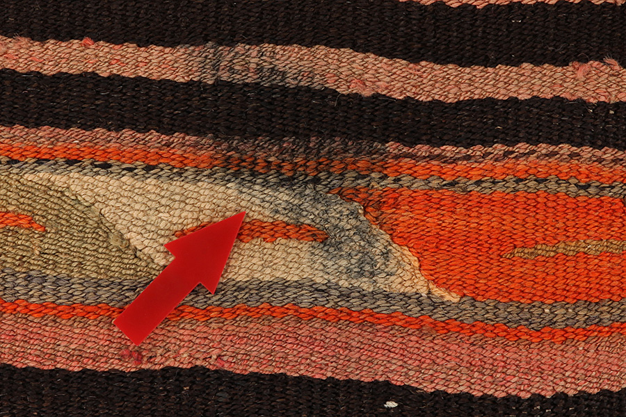 Abrash: A causa de su carácter graso variado y de la cantidad diferente de sal durante el teñido, las lanas absorben diferentes cantidades de color. Antes de tejerlas no es tan visible. Sin embargo, durante el proceso de tejido aparecen diferentes tonos del mismo color. Eso se llama Abrash que en persa significa nube y demuestra el hecho de que no se han usado medios químicos. Ejemplos