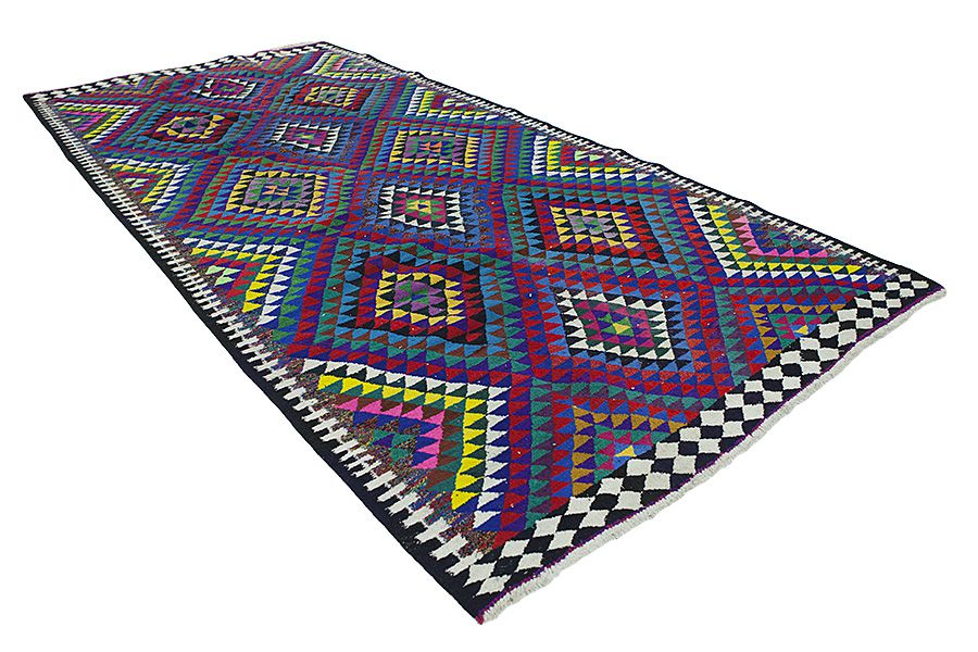 Kilim: Es un tipo concreto de alfombra oriental sin pelo (que precedió a la alfombra con pelo) y es tejida principalmente por nómadas en Persia, Afganistán, Turquía y en varias regiones de Caucaso. Se trata de prendas tejidas de tamaño no muy grande, de tejido sencillo, sin pelo, que se decoran con motivos geométricos y varios colores. Para tejerlos se usan materiales naturales como la lana y algunas veces la seda para kilims más delicados. La coloración de los hilos se hace con plantas y minerales que resultan en tonos de colores bonitos. La tradición de los kilims se pierde en los siglos y en los nómadas del Asia Central. Al principio los kilims se destinaban para uso casero y mucho tiempo después se comercializaron siguiendo el auge de la fabricación de alfombras en los siglos XVI-XVII. Se pueden usar para el suelo, para cubrir muebles o para decorar una pared. La palabra Kilim proviene de la palabra persa Gelim. En Curdo se llama Berr. Los kilims persas más conocidos son los Sumakh, Senneh, Fars y los Qashqai. Otros nombres de kilims afganos son Golbariasta, Maimane, Taimani, Maliki, etc. Muchos kilims se tejen también en la frontera de Persia y Afganistán por los nómadas Balouch con estos colores oscuros característicos.