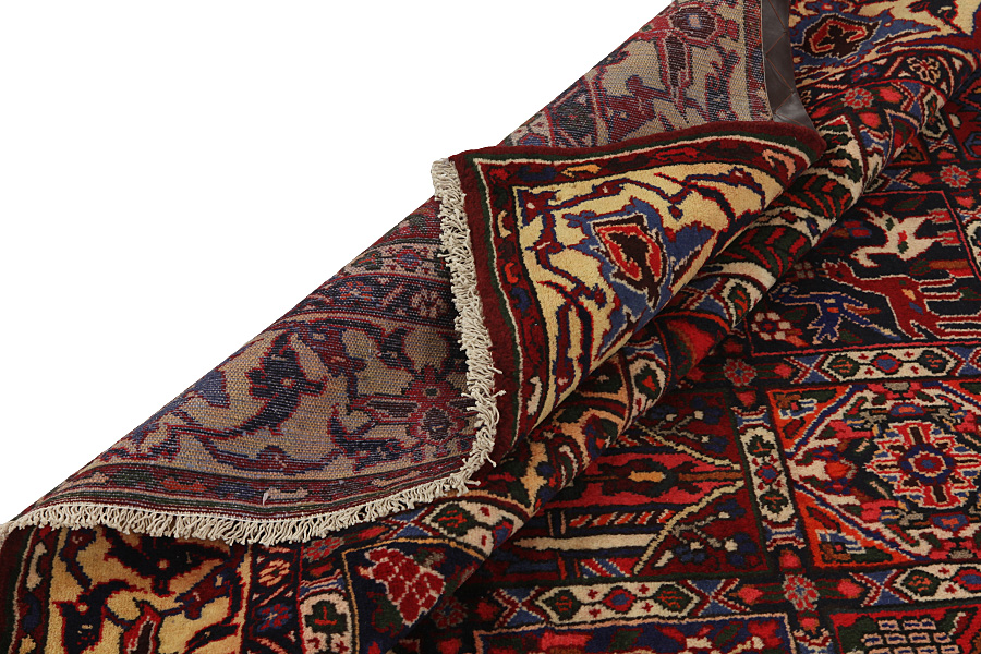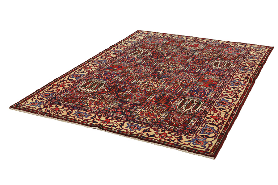 Alfombras Bakhtiari: En las montañas de Zagros, al oeste de la ciudad de Isfahan alrededor de Shar-e-Kurd viven los nómadas Bakhtiar. Sus alfombras son conocidas por los motivos de los cuadros repetidos dentro de los que se representan flores o animales. Por eso este motivo se llama "Jardín" (Khesti). Sus alfombras son muy resistentes, con tejido denso y lana persa de alta calidad que proviene de ovejas que viven en gran altura. Las mejores alfombras Bakhtiar que tienen la densidad más grande de nudos a menudo se llaman Bibibaf. Además, muchas alfombras están influenciadas por las alfombras Isfahan (Boldaji, Feridan, Saman).