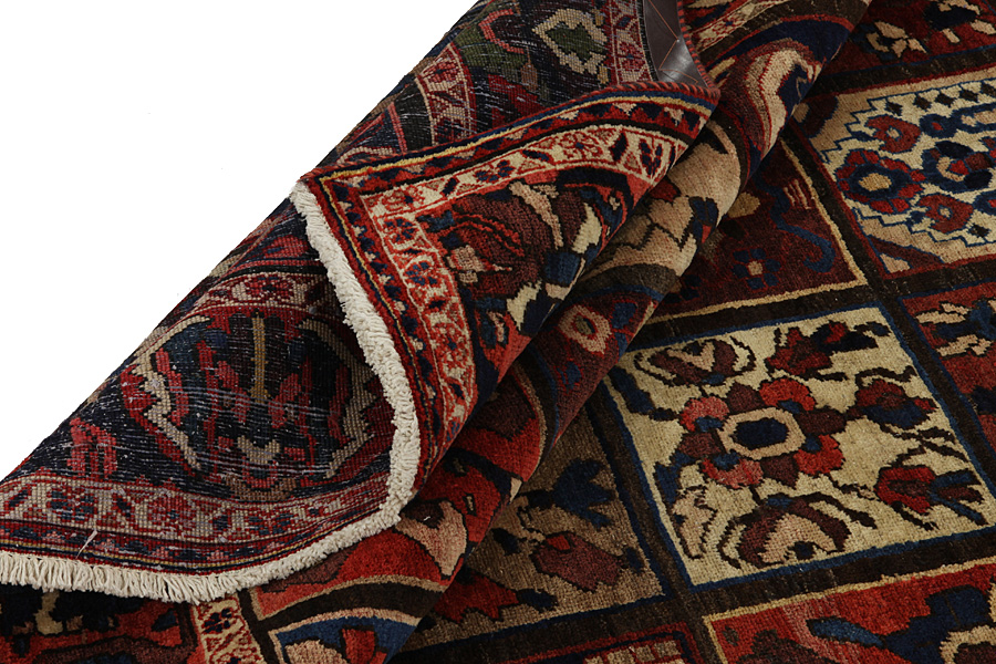 Alfombras Bakhtiari: En las montañas de Zagros, al oeste de la ciudad de Isfahan alrededor de Shar-e-Kurd viven los nómadas Bakhtiar. Sus alfombras son conocidas por los motivos de los cuadros repetidos dentro de los que se representan flores o animales. Por eso este motivo se llama "Jardín" (Khesti). Sus alfombras son muy resistentes, con tejido denso y lana persa de alta calidad que proviene de ovejas que viven en gran altura. Las mejores alfombras Bakhtiar que tienen la densidad más grande de nudos a menudo se llaman Bibibaf. Además, muchas alfombras están influenciadas por las alfombras Isfahan (Boldaji, Feridan, Saman).