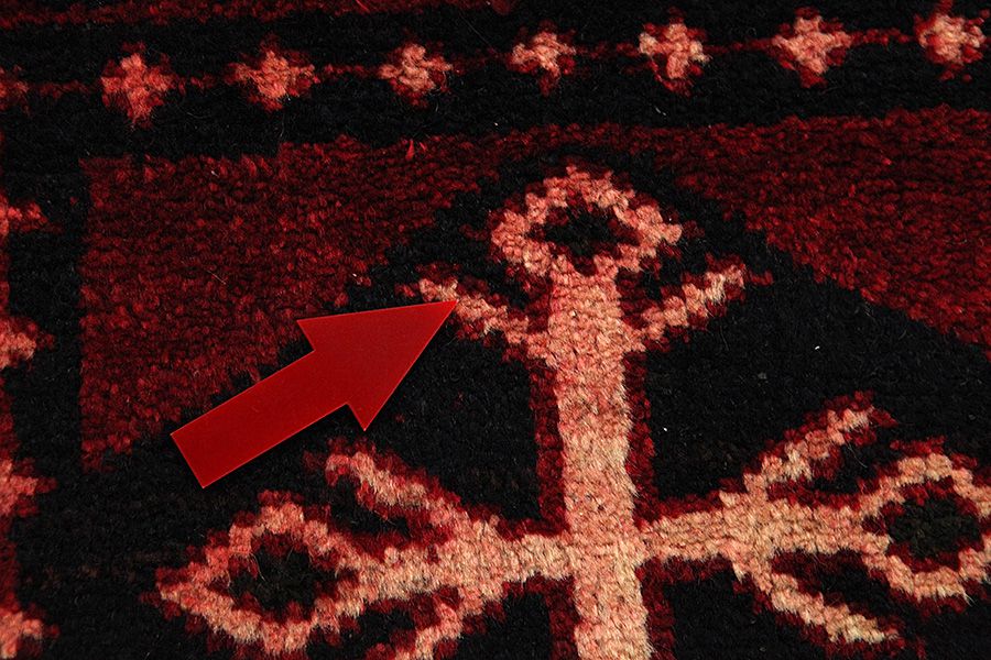 Abrash: A causa de su carácter graso variado y de la cantidad diferente de sal durante el teñido, las lanas absorben diferentes cantidades de color. Antes de tejerlas no es tan visible. Sin embargo, durante el proceso de tejido aparecen diferentes tonos del mismo color. Eso se llama Abrash que en persa significa nube y demuestra el hecho de que no se han usado medios químicos. Ejemplos