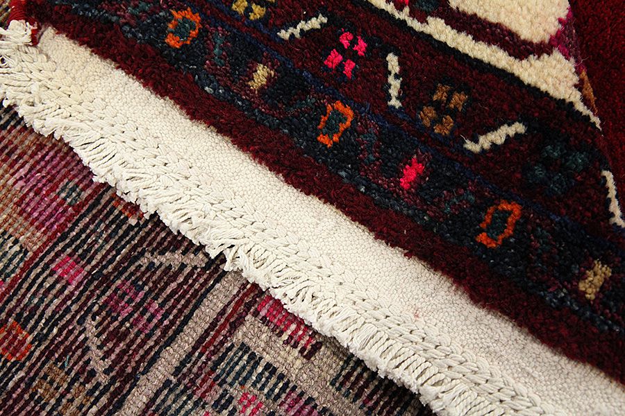 Abrash: A causa de su carácter graso variado y de la cantidad diferente de sal durante el teñido, las lanas absorben diferentes cantidades de color. Antes de tejerlas no es tan visible. Sin embargo, durante el proceso de tejido aparecen diferentes tonos del mismo color. Eso se llama Abrash que en persa significa nube y demuestra el hecho de que no se han usado medios químicos. Ejemplos