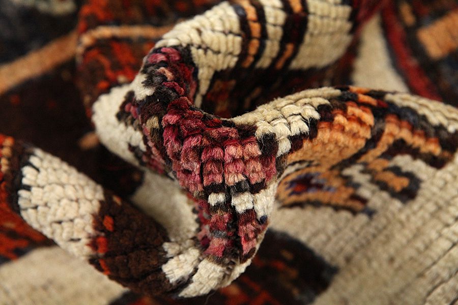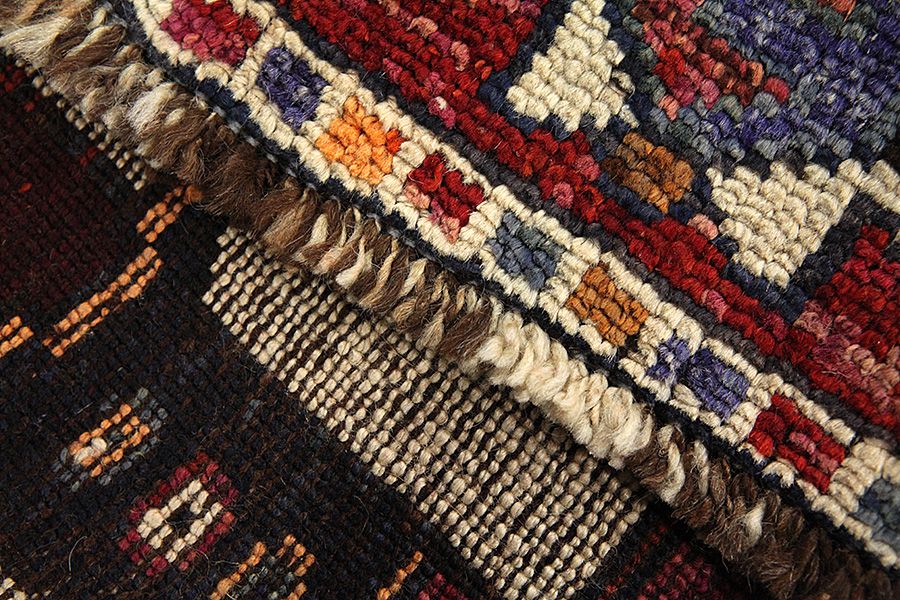 Abrash: A causa de su carácter graso variado y de la cantidad diferente de sal durante el teñido, las lanas absorben diferentes cantidades de color. Antes de tejerlas no es tan visible. Sin embargo, durante el proceso de tejido aparecen diferentes tonos del mismo color. Eso se llama Abrash que en persa significa nube y demuestra el hecho de que no se han usado medios químicos. Ejemplos