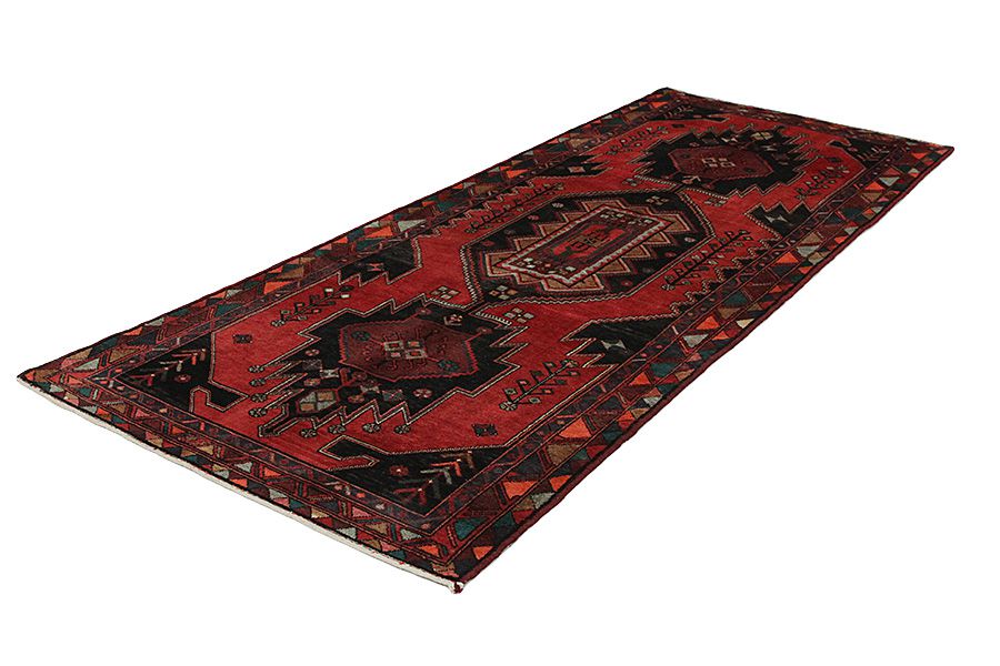Alfombras Hamadan: La ciudad de Hamadan está situada en la parte noroeste de Irán, a 300 km de Teherán. Es una de las ciudades más antiguas del mundo y en la Biblia se le cita con el nombre de Ekvatana. La ciudad es centro de recolección y distribución de las alfombras tejidas en centenares de pueblos y ciudades cercanos. Muchas de estas alfombras se venden con su propio nombre como Nahavand, Tuiserkan, Malayer, Hosseinabad, Burchalow, Enjilas, Lilihan, Khamse y Zanjan. Las alfombras más sencillas de la región se venden con el nombre Hamadan. Cada pueblo tiene su propio carácter en cuanto aa tejido, los motivos y los colores. En la mayoría de las alfombras Hamadan se usa lana de buena calidad en varios colores. Los colores son vegetales y predominan los tonos de azul, índigo y rojo.
