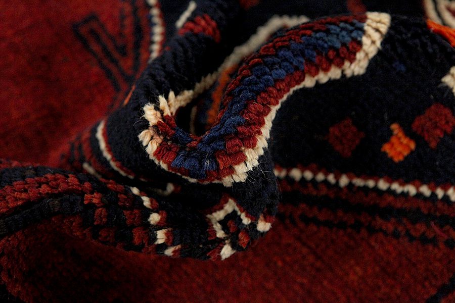 Alfombras Qashqai: Las alfombras Qashqai son tejidas por nómadas que viven en las regiones montañosas del suroeste de Persia, en las provincias de Fars, Khuzestán, al sur de Isgfahan y alrededor de la ciudad de Shiraz. Sus alfombras son muy densas en nudos y los diseños son variados, normalmente en rojo oscuro y azul. Tejen alfombras, kilims y varias prendas decorativas (bolsos, cintas etc), en los cuales se representan acontecimientos de sus vidas con seres humanos, animales, pájaros, árboles y flores. También se representan monumentos históricos y principalmente de Persepolis.