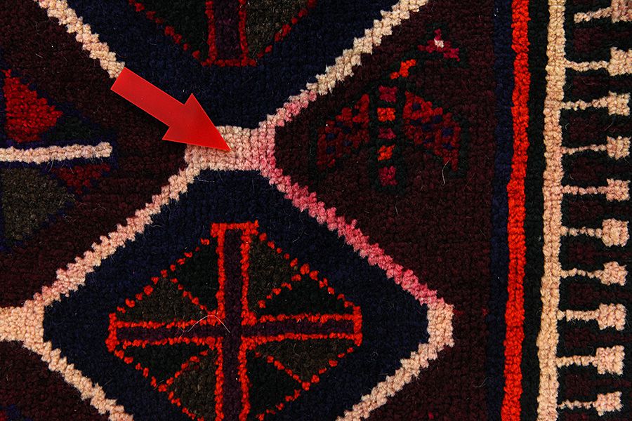 Abrash: A causa de su carácter graso variado y de la cantidad diferente de sal durante el teñido, las lanas absorben diferentes cantidades de color. Antes de tejerlas no es tan visible. Sin embargo, durante el proceso de tejido aparecen diferentes tonos del mismo color. Eso se llama Abrash que en persa significa nube y demuestra el hecho de que no se han usado medios químicos. Ejemplos