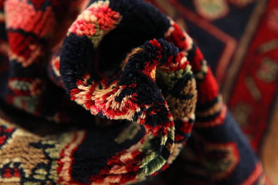 Abrash: A causa de su carácter graso variado y de la cantidad diferente de sal durante el teñido, las lanas absorben diferentes cantidades de color. Antes de tejerlas no es tan visible. Sin embargo, durante el proceso de tejido aparecen diferentes tonos del mismo color. Eso se llama Abrash que en persa significa nube y demuestra el hecho de que no se han usado medios químicos. Ejemplos