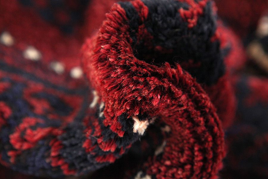 Abrash: A causa de su carácter graso variado y de la cantidad diferente de sal durante el teñido, las lanas absorben diferentes cantidades de color. Antes de tejerlas no es tan visible. Sin embargo, durante el proceso de tejido aparecen diferentes tonos del mismo color. Eso se llama Abrash que en persa significa nube y demuestra el hecho de que no se han usado medios químicos. Ejemplos