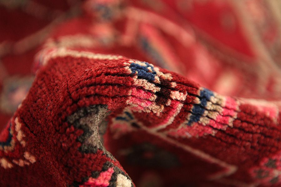 Abrash: A causa de su carácter graso variado y de la cantidad diferente de sal durante el teñido, las lanas absorben diferentes cantidades de color. Antes de tejerlas no es tan visible. Sin embargo, durante el proceso de tejido aparecen diferentes tonos del mismo color. Eso se llama Abrash que en persa significa nube y demuestra el hecho de que no se han usado medios químicos. Ejemplos