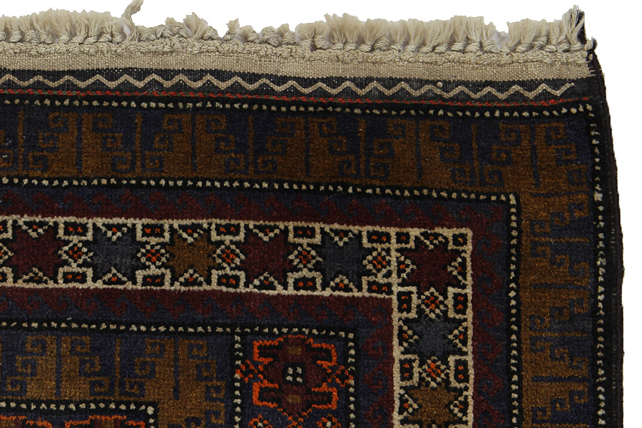 Alfombras Baluch: Los nómadas Baluch son grupos de diferentes razas, que vagan entre Persia y el Oeste de Afganistán. Los Baluch tejen alfombras de lana, resistentes, de alta calidad y de tejido muy densa. La urdimbre es de lana y algunas veces se usa tambiénlana de cabra. En las alfombras nuevas se utiliza también urdimbre de algodón. Muchas alfombras tienen un kilim decorativo en ambas partes de la anchura, lo que da mayor resistencia y protección a los daños. Los ribetes son a menudo de lana de cabra. Sus colores son vegetales en rojo oscuro, azul, marrón y negro. Los motivos son geométricos y muchas veces representan en varias formas, el Árbol de la Vida (una representación simbólica que se usa muchas veces en las alfombras de rezo). Las alfombras de lo Baluch que circulan en la ciudad de Mashad en Iran, se llaman Mashad-Baluch, mientras otras que se venden en la ciudad de Herat en Afganistán, se llaman Herat-Baluch.