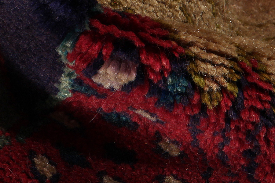 Abrash: A causa de su carácter graso variado y de la cantidad diferente de sal durante el teñido, las lanas absorben diferentes cantidades de color. Antes de tejerlas no es tan visible. Sin embargo, durante el proceso de tejido aparecen diferentes tonos del mismo color. Eso se llama Abrash que en persa significa nube y demuestra el hecho de que no se han usado medios químicos. Ejemplos