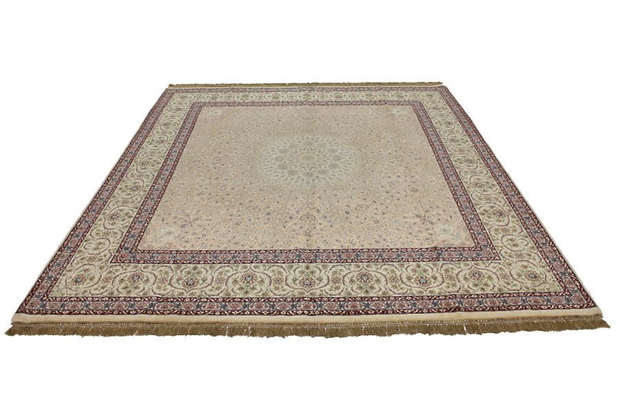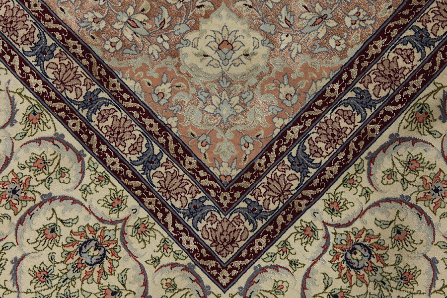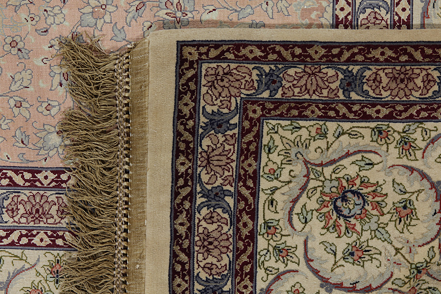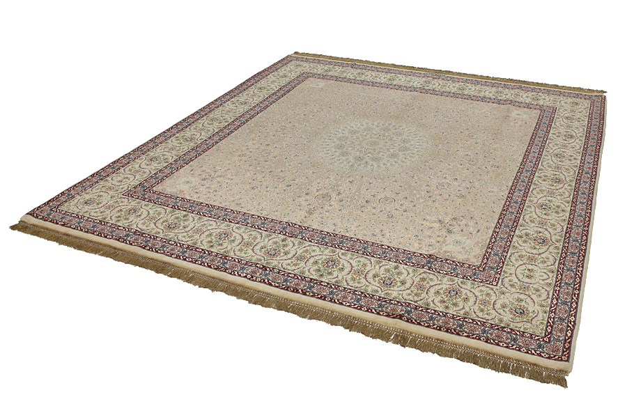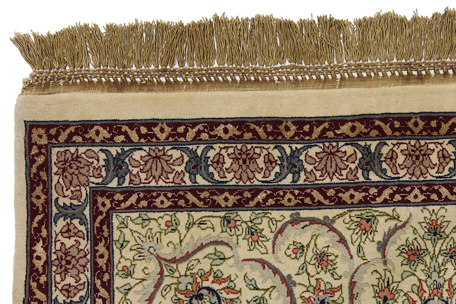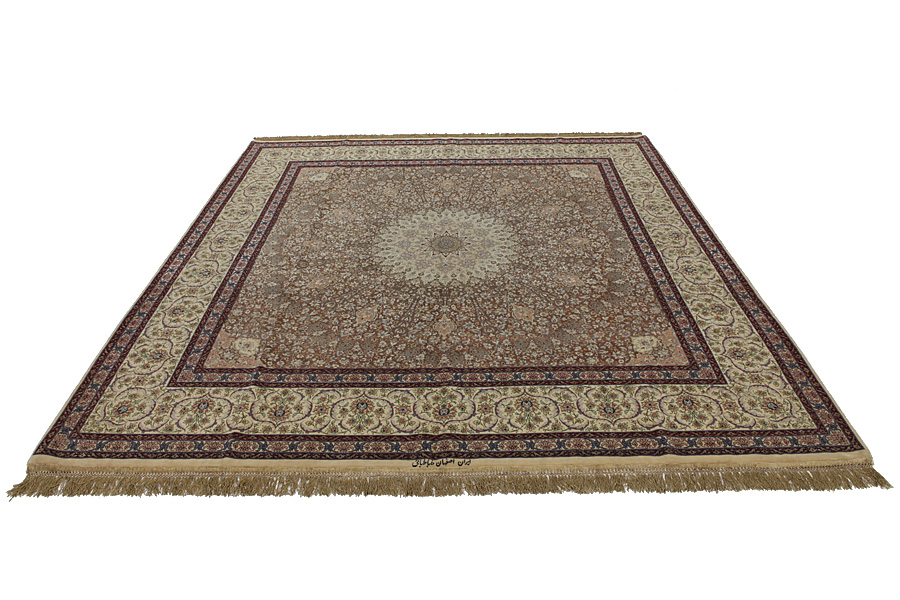 Alfombras Isfahan: En el centro de Irán, ente las montañas Zagros y el desierto, se encuentra la ciudad de Isfahan. Hoy en día, es una importante ciudad industrial con una población de 1,2 millones de habitantes. En cuanto a su arquitectura, la ciudad es una obra maestra. La plaza de Imam con sus mezquitas (Lotfollah y Ali Qapo), los palacios, los parques y los puentes antiguos, está rodeada por tiendas de miniaturas y alfombras, joyerías y casas de té. Todo esto crea un atmósfera de verdadro Oriente. Las antiguasalfombras de Isfahan, por el contrario de las nuevos, no tenían medallón en el centro. Por toda la superficie había flores primorosas y palmetas. Las nuevas alfombras Isfahan no se pueden comparar con las antiguas, tejidas exclusivamente paralos aristócratas. Sin embargo, siguiendo la tradición, las nuevas alfombras Isfahan son muy finas, y el pelo se corta mucho para que se vean mejor las figuras. En el tejido usan también seda, principalmente en las flores. La urdimbre es de lana o dealgodón.