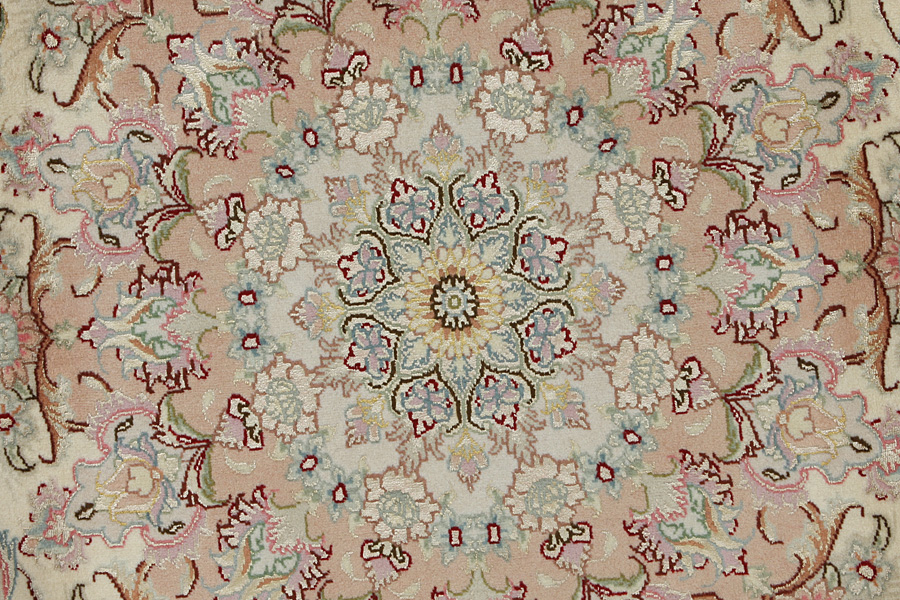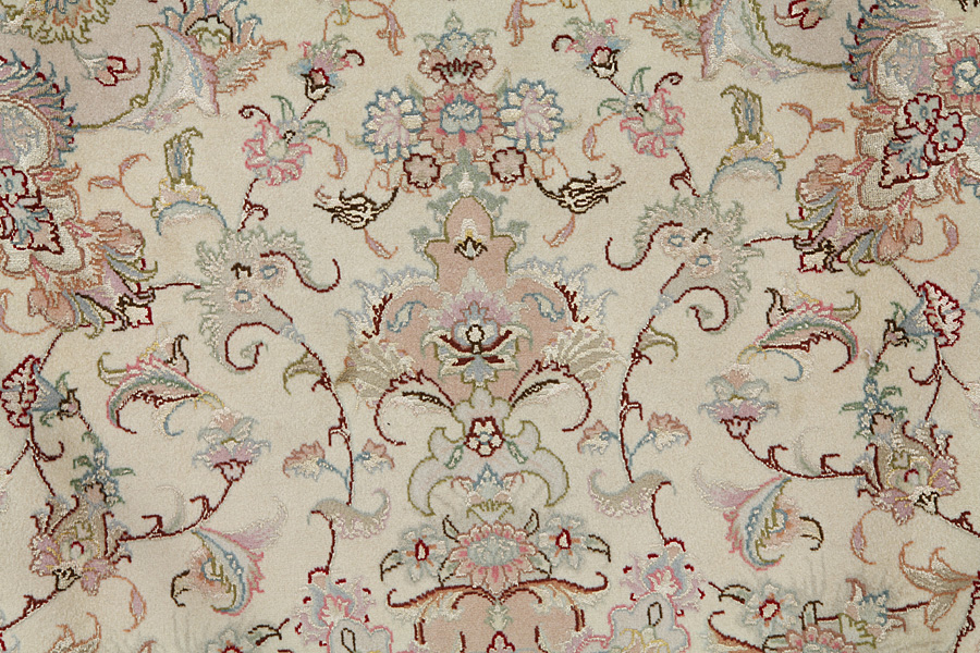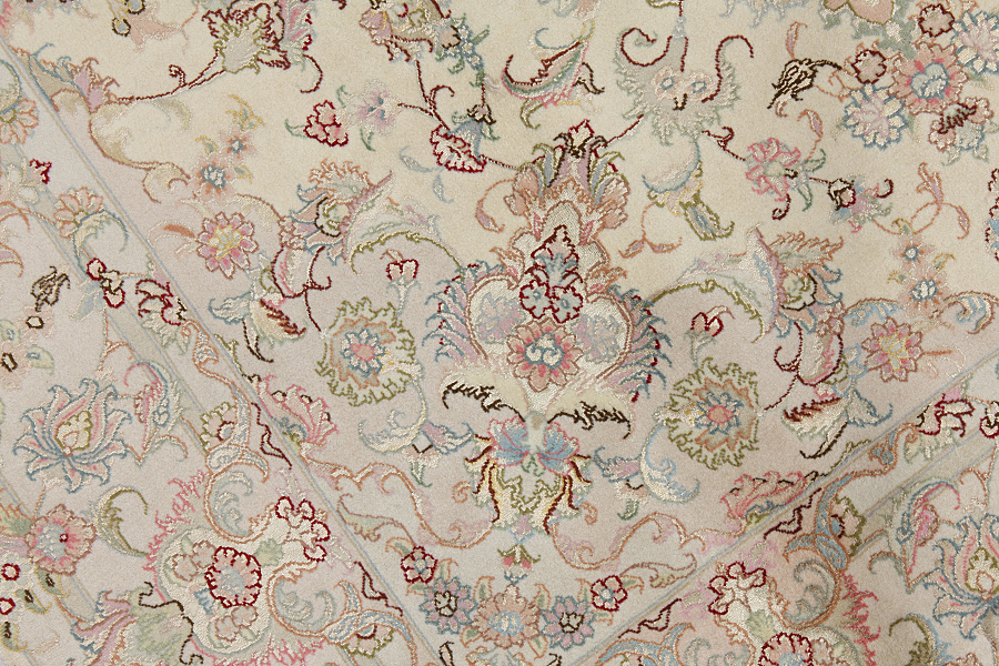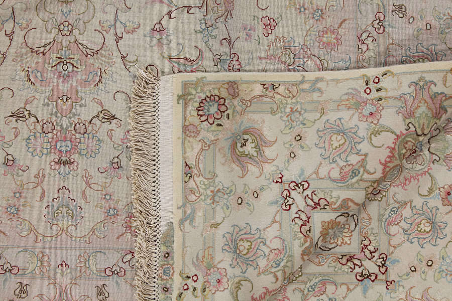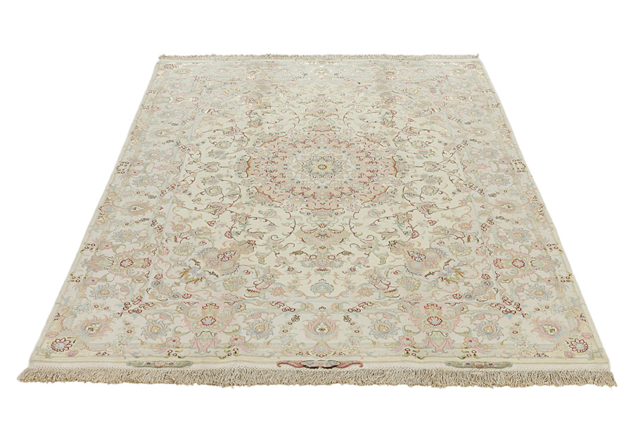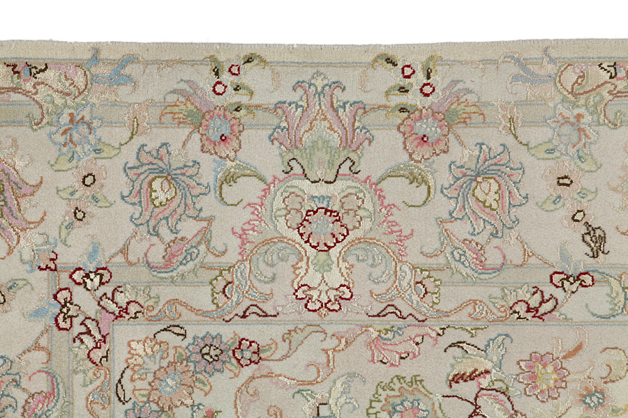 Alfombras Tabriz: La ciudad de Tabriz es la capital de la provincia de Azerbaiyán en el suroeste de Irán. Hasta el final de la época de las caravanas fue el centro más importante de tejido y mercado de las alfombras Tabriz. El Occidente compraba aquí las obras maestras creadas por los tejedores renombrados y capacitados. Se conocieron en los mercados internacionales por su alta calidad. Se crearon talleres de alfombras tejidas a mano, donde se tejían diseños antiguos y modernos anudados con densidad y meteriales de alta calidad. La seda y la lana fina de primera clase dan una alta calidad a las alfombras. Ninguna ciudad persa tenía una producción tan grande y amplia de alfombras. Con o sin medallón, sus motivos son excepcionales y llenos de fantasía. Flores, representaciones y versos de poemas también decoran las alfombras. Los colores predominantes son el beige, el azul y el rojo.