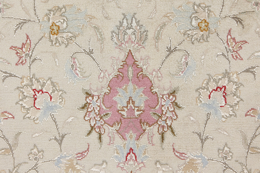 Alfombras Tabriz: La ciudad de Tabriz es la capital de la provincia de Azerbaiyán en el suroeste de Irán. Hasta el final de la época de las caravanas fue el centro más importante de tejido y mercado de las alfombras Tabriz. El Occidente compraba aquí las obras maestras creadas por los tejedores renombrados y capacitados. Se conocieron en los mercados internacionales por su alta calidad. Se crearon talleres de alfombras tejidas a mano, donde se tejían diseños antiguos y modernos anudados con densidad y meteriales de alta calidad. La seda y la lana fina de primera clase dan una alta calidad a las alfombras. Ninguna ciudad persa tenía una producción tan grande y amplia de alfombras. Con o sin medallón, sus motivos son excepcionales y llenos de fantasía. Flores, representaciones y versos de poemas también decoran las alfombras. Los colores predominantes son el beige, el azul y el rojo.