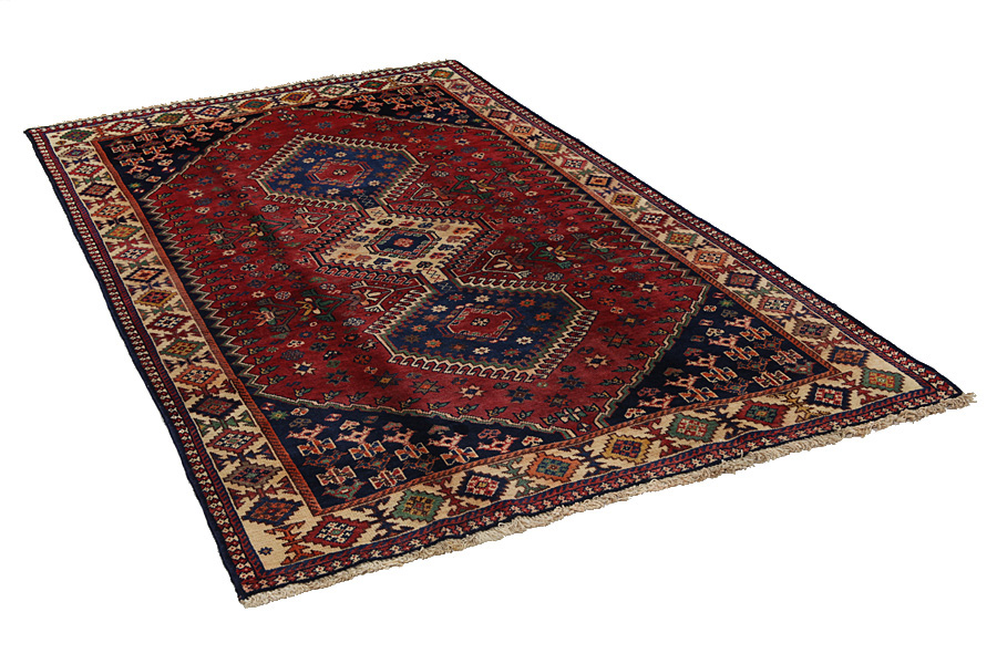 Alfombras Shiraz: Las alfombras Shiraz son un génere de la alfombra Persa que es producida en los pueblos en torno de la ciudad Shiraz. Sus diseños son geométricos y son caracterizados de un medallón en el centro de la alfombra. Sus colores son el rojo y el marrón y habitualmente está utilizada la forma de un diamante como trama principal.