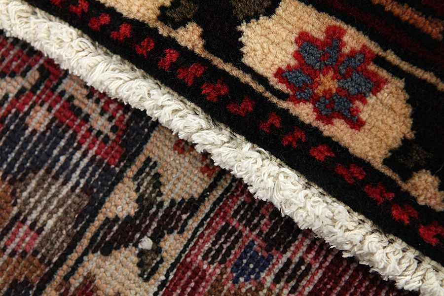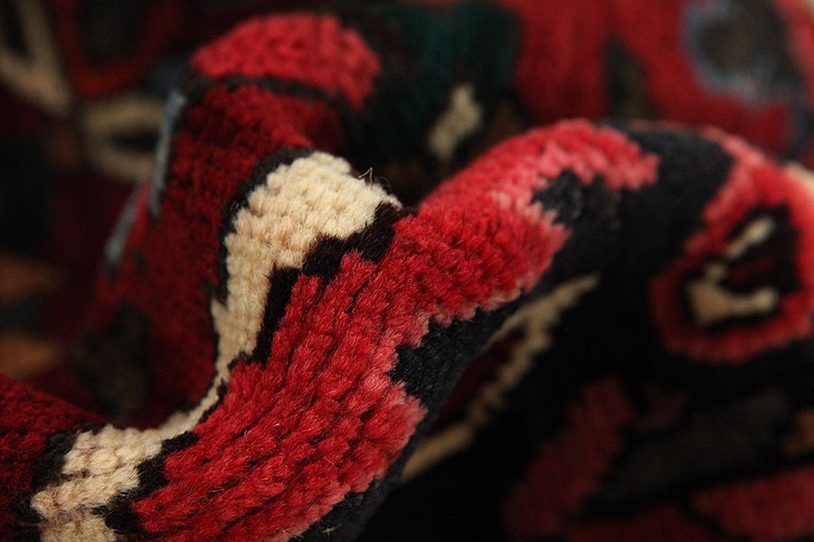 Abrash: A causa de su carácter graso variado y de la cantidad diferente de sal durante el teñido, las lanas absorben diferentes cantidades de color. Antes de tejerlas no es tan visible. Sin embargo, durante el proceso de tejido aparecen diferentes tonos del mismo color. Eso se llama Abrash que en persa significa nube y demuestra el hecho de que no se han usado medios químicos. Ejemplos