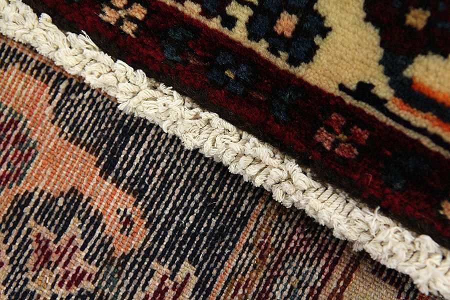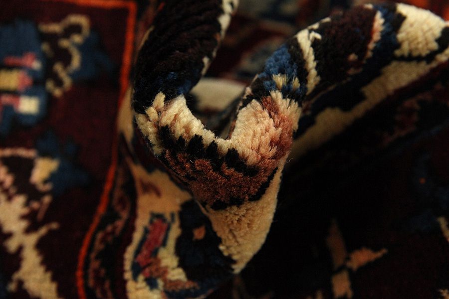 Abrash: A causa de su carácter graso variado y de la cantidad diferente de sal durante el teñido, las lanas absorben diferentes cantidades de color. Antes de tejerlas no es tan visible. Sin embargo, durante el proceso de tejido aparecen diferentes tonos del mismo color. Eso se llama Abrash que en persa significa nube y demuestra el hecho de que no se han usado medios químicos. Ejemplos