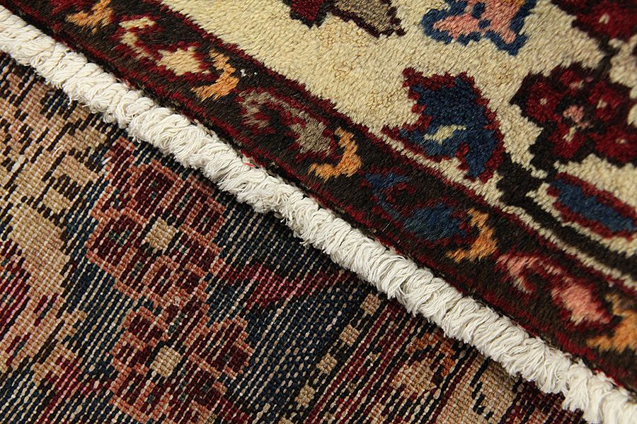 Abrash: A causa de su carácter graso variado y de la cantidad diferente de sal durante el teñido, las lanas absorben diferentes cantidades de color. Antes de tejerlas no es tan visible. Sin embargo, durante el proceso de tejido aparecen diferentes tonos del mismo color. Eso se llama Abrash que en persa significa nube y demuestra el hecho de que no se han usado medios químicos. Ejemplos